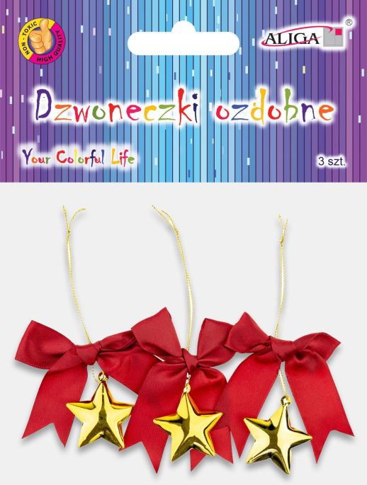 Dzwoneczki ozdobne DZW-5258 gwiazdki, rozm. 6x7cm, op.3szt. |