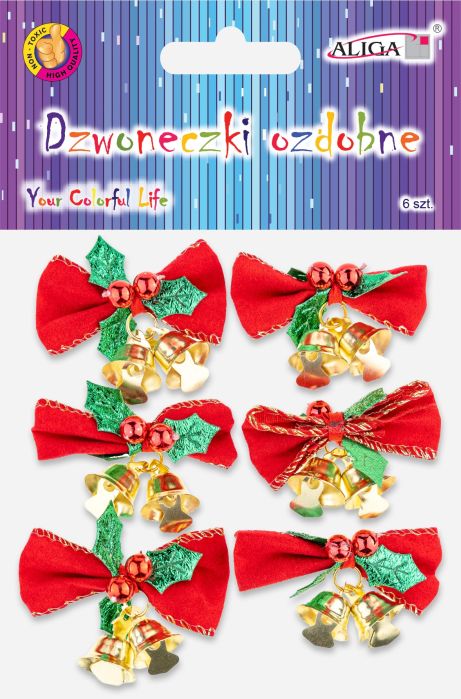 Dzwoneczki ozdobne DZW-5265 z kokardką, rozm. 6x7cm, op. 3szt. |