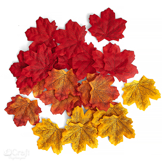 JESIENNE LIŚCIE KLONU 7-8 CM, 50 SZT. [opakowanie=6szt]Zestaw 50 materiałowych liści to niezastąpiony dodatek do kompozycji florystycznych, stroików, scrapbookingowych projektów, pakowania prezentów czy dekoracji stołu.