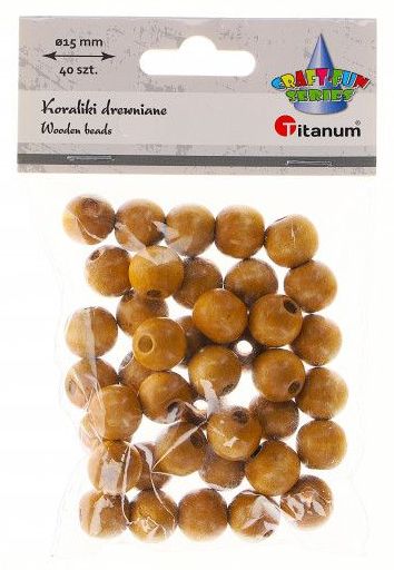 Koraliki drewniane okrągłe O15mm otwór O3mm lakierowane jasnobrązowe drewno 40szt. |