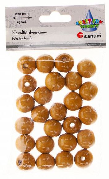 Koraliki drewniane okrągłe O20mm otwór O3mm lakierowane jasnobrązowe drewno 25szt. |