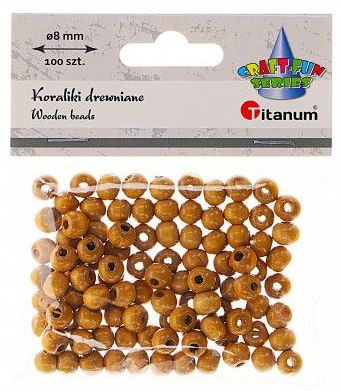 Koraliki drewniane okrągłe O8mm otwór O3mm lakierowane jasnobrązowe drewno 100szt. |