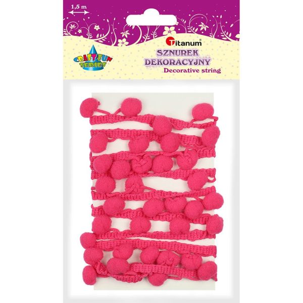 Pompony 12mm na taśmie 1, 5m ciemnoróżowe |