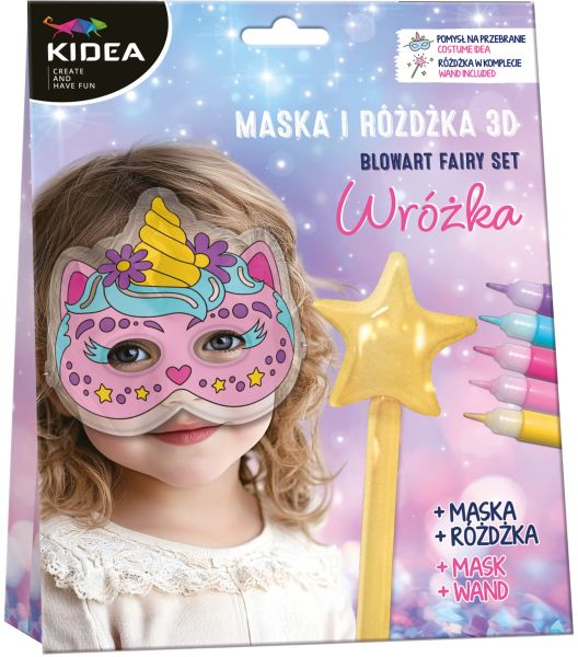 ZESTAW 3D BLOWART WRÓŻKA KIDEAZestaw 3D z maską i dużą różdżką wysokości 36 cm. Pokoloruj maskę wybranymi kolorami żelu. Poczekaj, aż żel całkowicie wyschnie - około 5h. Włóż rurkę do maski i nadmuchaj ją nadając odpowiedni kształt. Po wyjęciu rurki zawór automatycznie się zamknie,... |