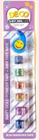 Cechy produktu: ✔ Zestaw: 6 rolek taśmy + obcinacz. ✔ Typ: taśmy samoprzylepne dekoracyjne (mini masking tape). ✔ Efekt: połyskujący / brokatowy / metalizowany. ✔ Kolory: mix odcieni – różowy, złoty, zielony, fioletowy, niebieski, pomarańczowy. ✔ Idealne do: ozdabiania, pakowania prezentów, projektów DIY, scrapbookingu. ✔ Poręczny obcinacz w zestawie – wygodne użytkowanie.