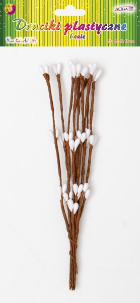 Dekoracyjne druciki plastyczne stylizowane na gałązki bazi, o długości 15 cm, to doskonały dodatek do florystyki, rękodzieła i wielkanocnych dekoracji. Dzięki realistycznemu wyglądowi idealnie sprawdzą się w stroikach, bukietach, wiankach i innych kompozycjach dekoracyjnych.