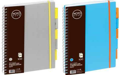 – polipropylenowa ok³adka i kolorowe przek³adki indeksuj±ce – podwójna metalowa spirala – liniatura: kratka – 100 kartek – 5 przek³adek – format A4 – gramatura 80 g/m2