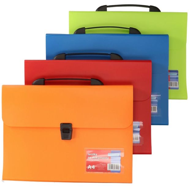 Teczka SCHEMAT to niezawodny organizer dokumentów w formacie A4, idealny do szkoły, biura i domowego użytku. Wykonana z wytrzymałego polipropylenu, odporna na zniszczenia i intensywną eksploatację. Posiada mocny zatrzask oraz ergonomiczną rączkę, co gwarantuje bezpieczne przechowywanie i komfortowe przenoszenie dokumentów. Wewnątrz znajduje się 12 przegródek z mocnej folii, które pozwalają na szybkie i przejrzyste segregowanie papierów. Dostępna w czterech intensywnych kolorach.
