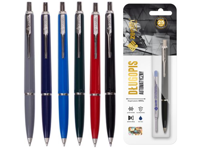 Długopis automatyczny 0,8 mm ZENITH 7 CLASSIC mix kolorów + wkład - 1+1 szt. blister [opakowanie=20szt]