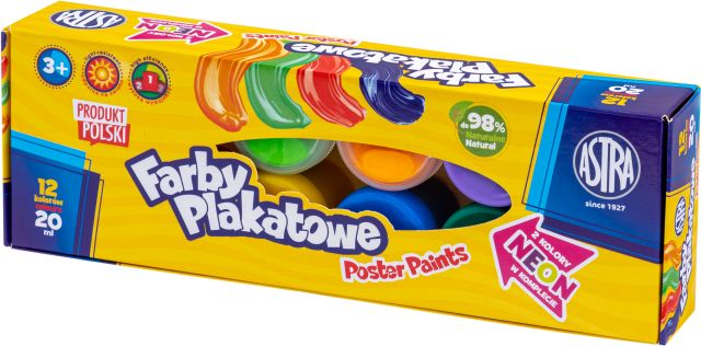 Farby » Farby Plakatowe W Słoiczkach » Farby Plakatowe 12 Kolorów » Farby plakatowe Astra 12 kol x 20 ml STANDARD BOX (2 neon) [opakowanie=4szt]