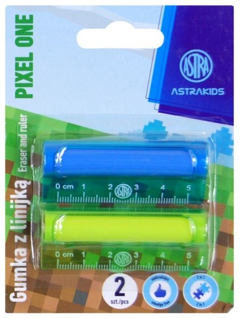 Gumki i Temperówki » Gumki do mazania » Gumki do mazania na blistrach » Gumka i linijka 2 w 1 ASTRAKIDS Pixel One - blister 2 szt. [opakowanie=24szt]