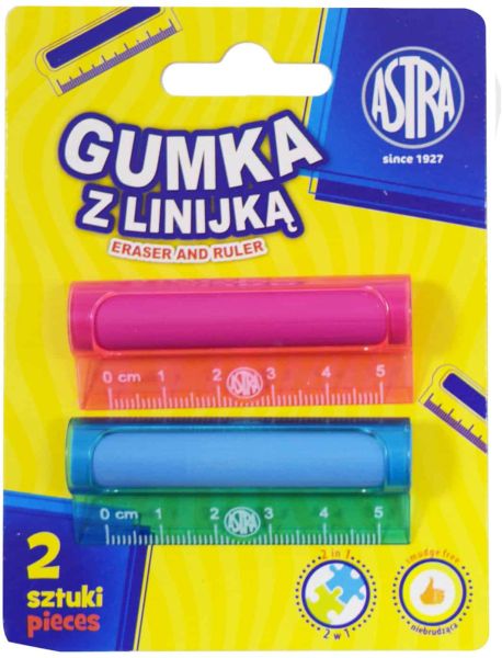 Gumka i linijka 5cm 2w1 ASTRA - 2 szt. blister [opakowanie=24szt]