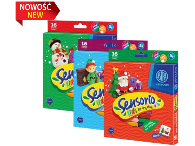 Plastelina, Modelina, Masy Plastyczne » Masy Plastyczne » Inne Masy » Lekka masa plastyczna ASTRAFUN Sensorio Kids Mikołaj Bałwanek Elf -16 kol [opakowanie=12szt]