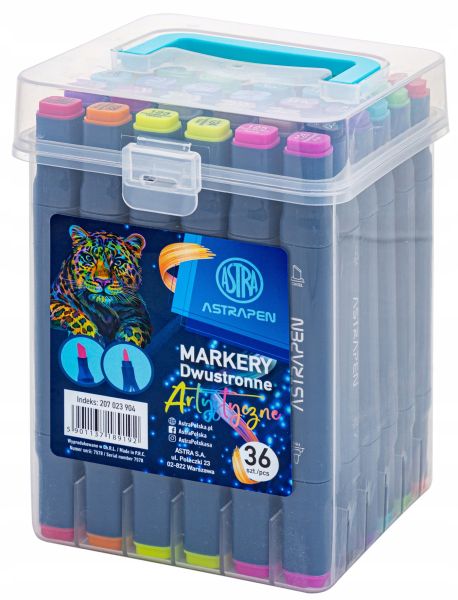 Pisaki, Markery, Zakreślacze » Markery i Pisaki Zdobnicze i artystyczne » Markery artystyczne kwadratowe dwustronne ASTRAPEN - 36 kolorów -30 standardowych i 6 neonowych - cienka i ścięta końcówka [opakowanie=12szt]