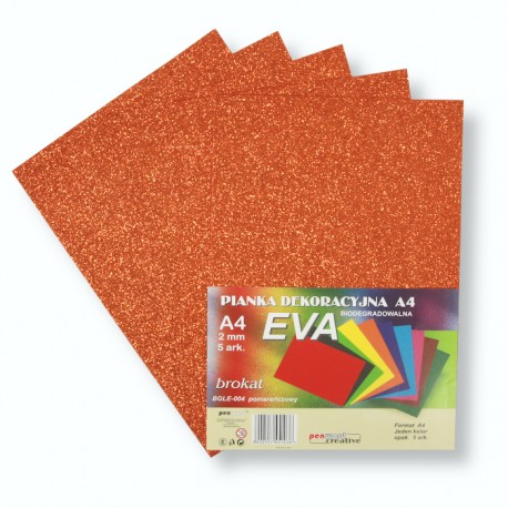 Artykuły Ozdobne i Kreatywne » Filc Pianka Guma » Arkusze z pianki i z gumy » PIANKA EVA BROKAT A4 POMARAŃCZOWA BGLE-004 BIODEGRADOWALNA a5