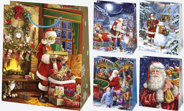 Piękne torebki prezentowe POL-MAK z kolekcji Gwiazdka to kwintesencja świątecznego klimatu! Każdy wzór tchnie ciepłem domowego ogniska, blaskiem choinki i radością obdarowywania. Bohaterem serii jest klasyczny Święty Mikołaj w różnych świątecznych scenach – przy kominku, z saniami, reniferami i prezentami. Idealne do zapakowania świątecznych podarunków zarówno dla dorosłych, jak i dzieci.
