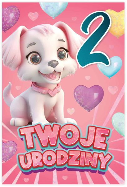🐶 Kartka urodzinowa KARTKI Z KOTKIEM Piesek – Twoje 2 Urodziny!