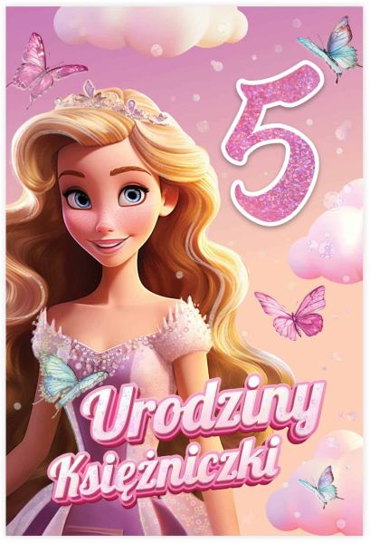 Kartka urodzinowa dla dziecka KZK B6 Nr 083, na 5 urodziny z Księżniczką