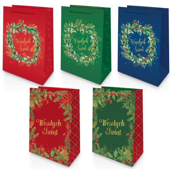 Szukasz świątecznych toreb prezentowych w hurcie? Nasza hurtownia papiernicza i świąteczna oferuje szeroki wybór eleganckich wzorów z napisem Wesołych Świąt w formacie A4 – idealnych dla sklepów z artykułami dekoracyjnymi i upominkowymi.