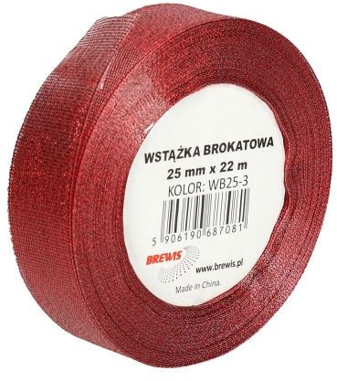 Wstążka brokatowa rozmiar: 25mm x 22 m kolor: czerwony