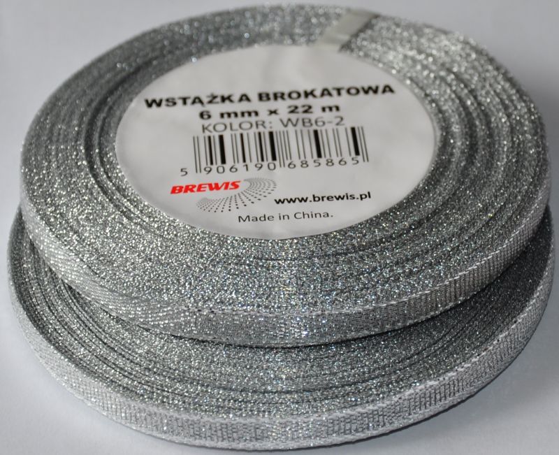 Wstążka brokatowa rozmiar: 25mm x 22 m kolor: srebrny