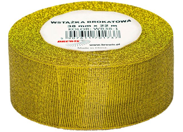 Wstążka brokatowa rozmiar: 38mm x 22 m kolor: złoty
