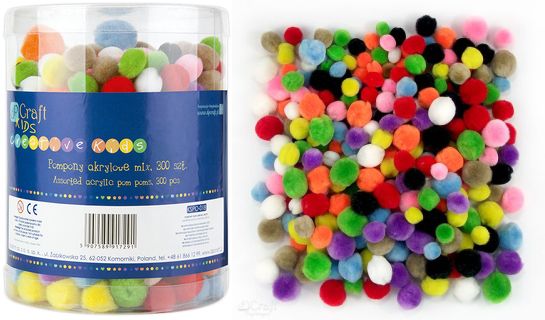 Artykuły Ozdobne i Kreatywne » Pompony » POMPONY AKRYLOWE MIX, 300 SZT. tuba