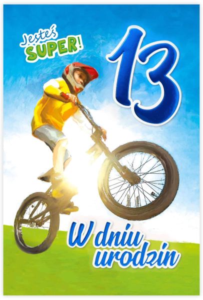 🚴 Kartka urodzinowa 13 – rowerowy, pe³en adrenaliny wzór dla ch³opca!
