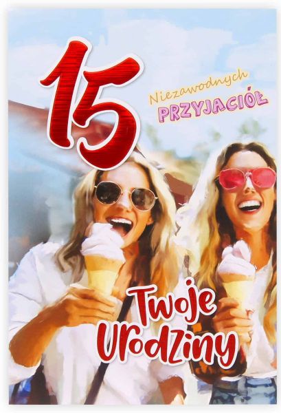 🍦 Kartka urodzinowa 15 – letni, przyjacielski wzór dla dziewczyny!