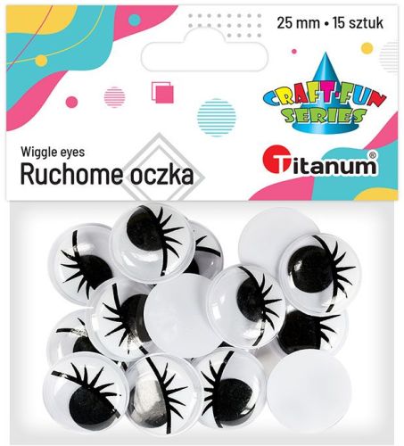 Artykuły Ozdobne i Kreatywne » Ruchome Oczka » Oczy bez kleju czarne 25mm z rzęsami 15szt.