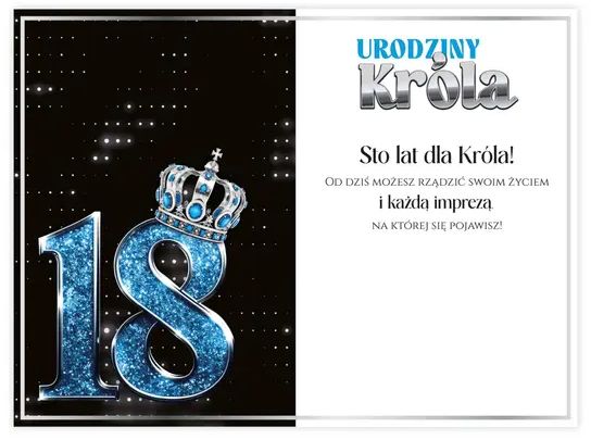 Kartki, Pamiątki, Upominki » Kartki Okolicznościowe » Kartki Urodzinowe "18-stka" » Kartka na 18 urodziny KZK nr16 "Urodziny Króla"