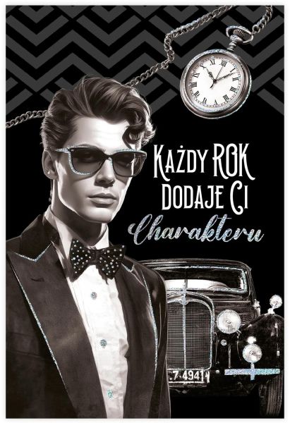 Kartka urodzinowa KZK B6 Męska w stylu retro nr32 „Każdy rok dodaje charakteru"