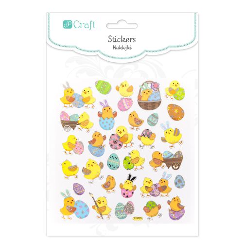 Arkusz kolorowych naklejek z motywem kolorowych kurczaczków. Doskonałe do zdobienia projektów scrapbookingowych, kartek okolicznościowych, pakowania prezentów, a także do wszelkiego rodzaju dziecięcej aktywności twórczej. Pakowanie: 10 szt