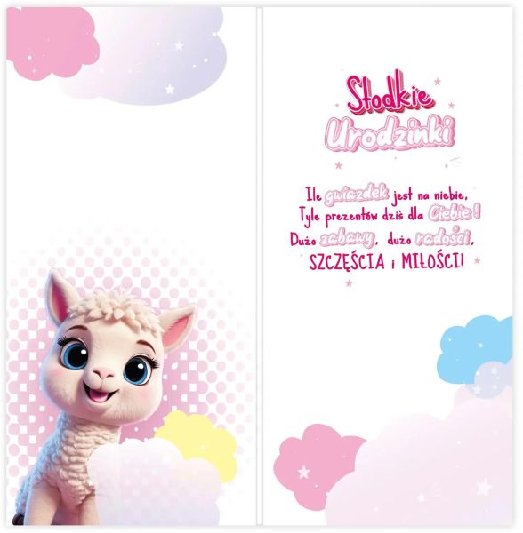 Kartki, Pamiątki, Upominki » Kartki Okolicznościowe » Kartki Urodzinowe Dziecięce » Kartka urodzinowa dla dziecka KZK DL nr19 "Mała Alpaka"