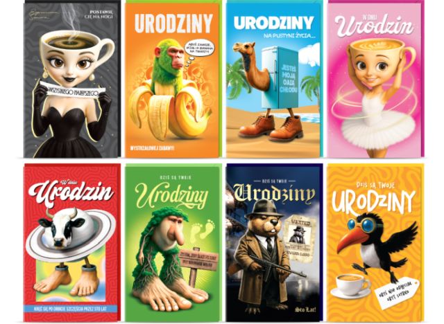 - Wnętrze karnetu jest kolorowe i zawiera gotowe życzenia