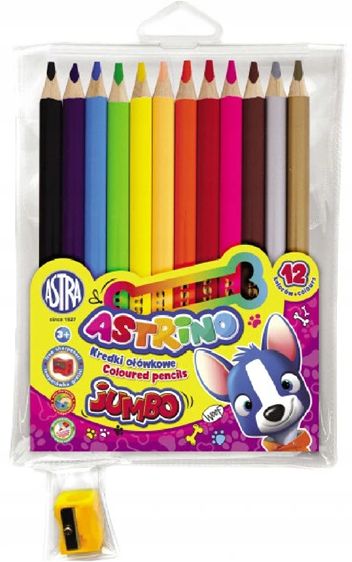Kredki ołówkowe okrągłe Jumbo ASTRINO - 12 kolorów + temperówka HURT