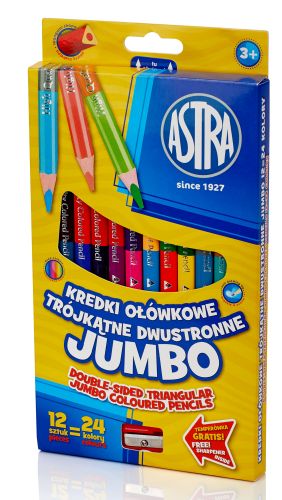 Kredki, Kreda, Pastele » Kredki Ołówkowe Komplety » Kredki Dwustronne » Kredki ołówkowe jumbo ASTRA - 12=24 kolory z temperówką HURT