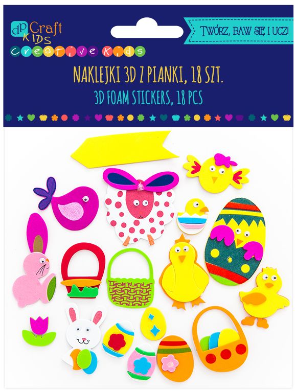 NAKLEJKI 3D Z PIANKI - WIELKANOC, 18 SZT. [opakowanie=6szt] WLK-DLP
