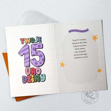 Kartki, Pamiątki, Upominki » Kartki Okolicznościowe » Kartki Urodzinowe Dziecięce » Kartki karnet PAN DRAGON STAR-144 "15"