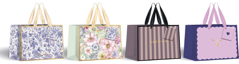 Wykonana z wysokiej jakości papieru 190 g. Eleganckie, matowe wykończenie. Wzmocniony, sztywny spód. Bilecik z miejscem na życzenia lub imię obdarowywanej osoby. Uchwyty wykonane z atłasowej wstążki. Idealna do szybkiego i efektywnego pakowania prezentów. Wymiar: 23x18x10cm