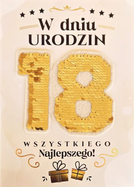 Kartka na 18 urodziny ARMIN STYLE CE-01 "18" ruchome cekiny