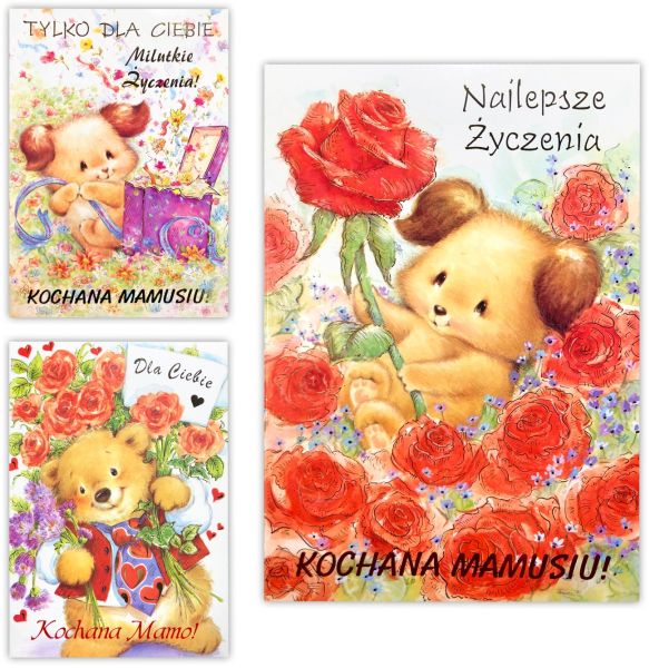 Karnet z uszlachetnieniem na Dzień Matki: – złocone elementy graficzne – środek karnetu z tekstem życzeń – koperta w zestawie