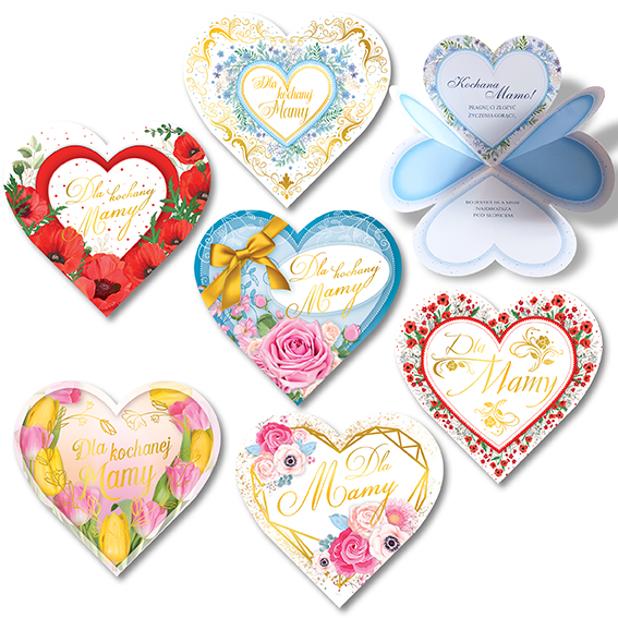 Kartki karnet DELTA serce przestrzenne Dzień Matki