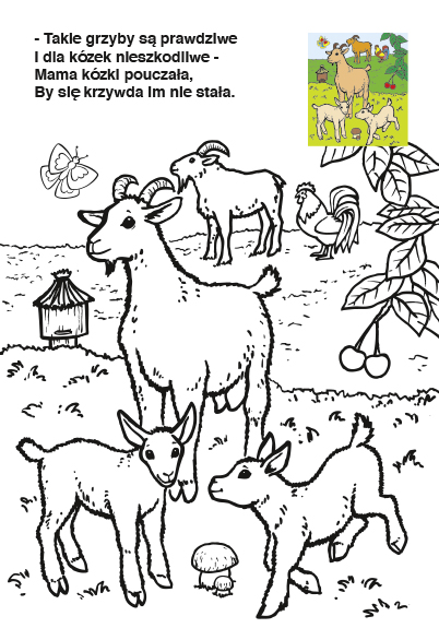 Kolorowanka Zwierzęta na Wsi. Książeczka z wesołymi obrazkamii. Kolorowy obrazek może stanowić inspirację do kolorowania. Można również użyć własnej inwencji. Każdy obrazek posiada wesoły wierszyk.