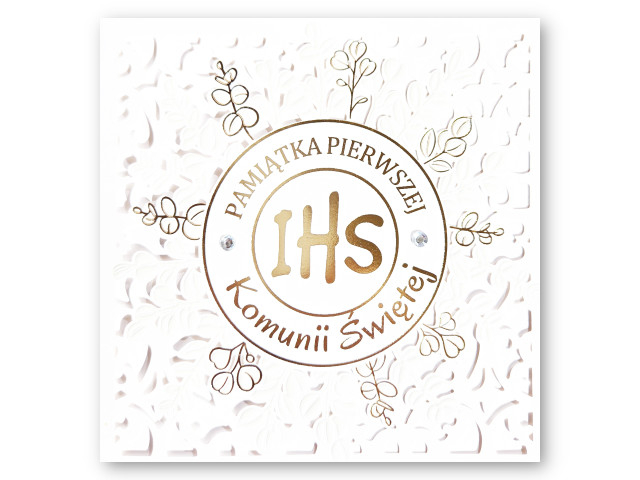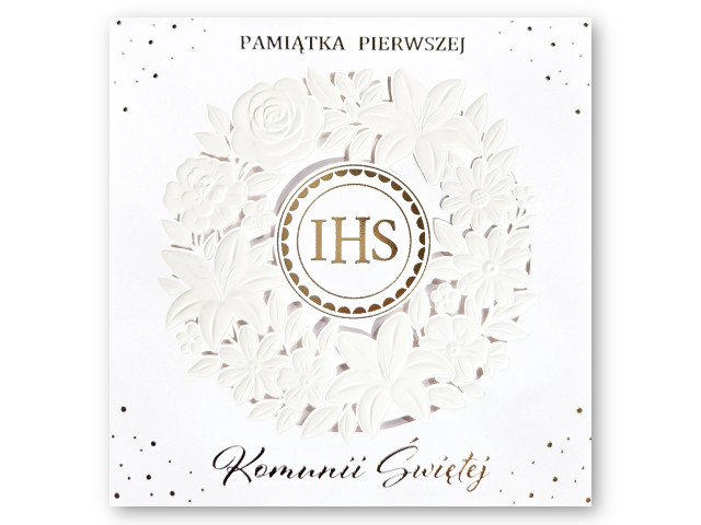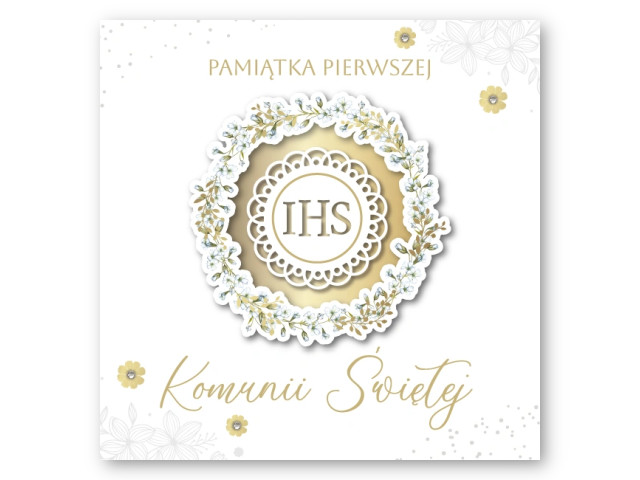 Kartka na Pierwszą Komunię ARMIN STYLE KL-23✝️ Karnet kwadratowy Pamiątka Pierwszej Komunii Świętej – ze złoceniem lub srebrzeniem i elementami przestrzennymi