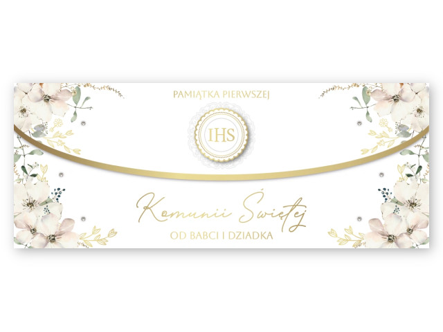 Kartka - koperta na pieniądze na I Komunię ARMIN STYLE LUX-212 od Babci i Dziadka✨ Karnet I Komunia Św. od Babci i Dziadka 25x10cm z kopertą na pieniądze lub kartę – elegancka pamiątka Pierwszej Komunii Świętej
