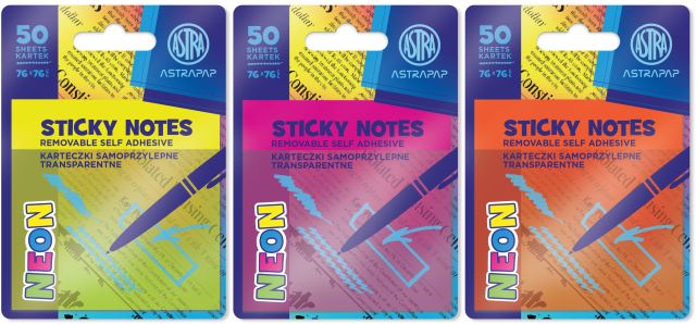 Karteczki samoprzylepne transparentne ASTRAPAP NEON LINE 76x76mm, 50k📝 Karteczki samoprzylepne transparentne ASTRAPAP NEON LINE 76x76mm – 50 kartek