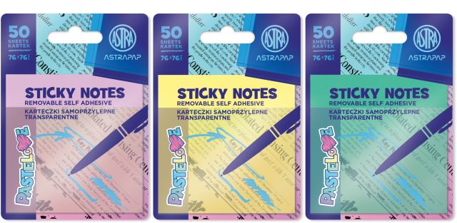 Karteczki samoprzylepne transparentne ASTRAPAP PASTEL LINE 76x76mm, 50k📝 Karteczki samoprzylepne transparentne ASTRAPAP PASTEL LINE 76x76mm – 50 kartek