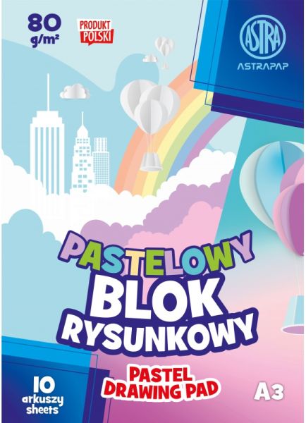 Blok techniczny kolorowy A3 10k. 170g ASTRAPAP PastelBlok rysunkowy Astra jest idealny do rysowania, składania czy wycinania. Posiada piękne pastelowe kolory, które doskonale sprawdzą się na zajęciach plastycznych.