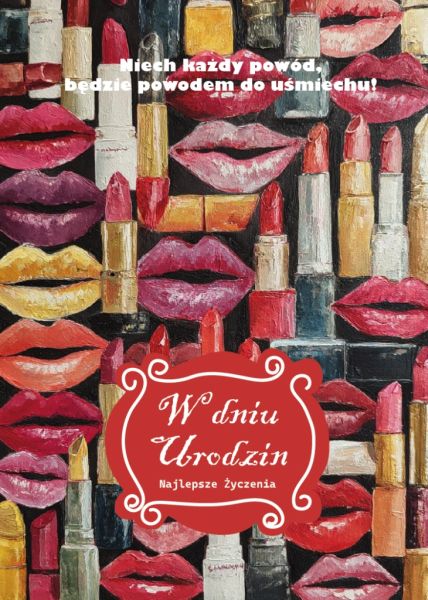 Kartka urodzinowa ARMIN STYLE GM-1350 Malarska, Szminki💄 Karnet urodzinowy B6 „W dniu Urodzin” – stylowa kartka z motywem szminek i ust